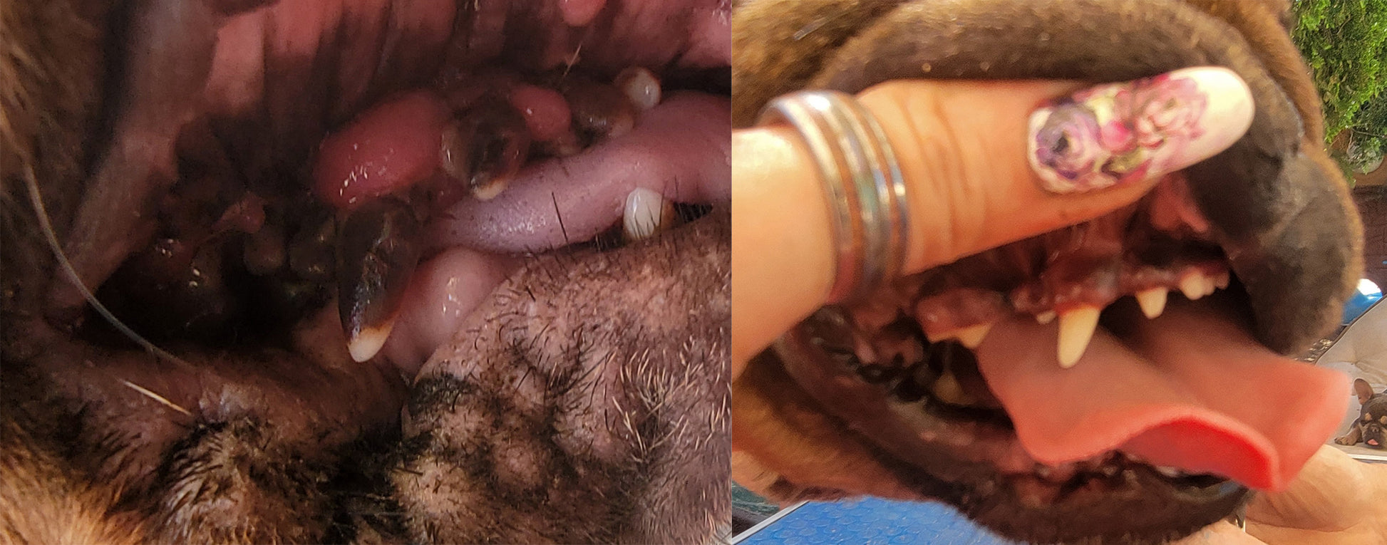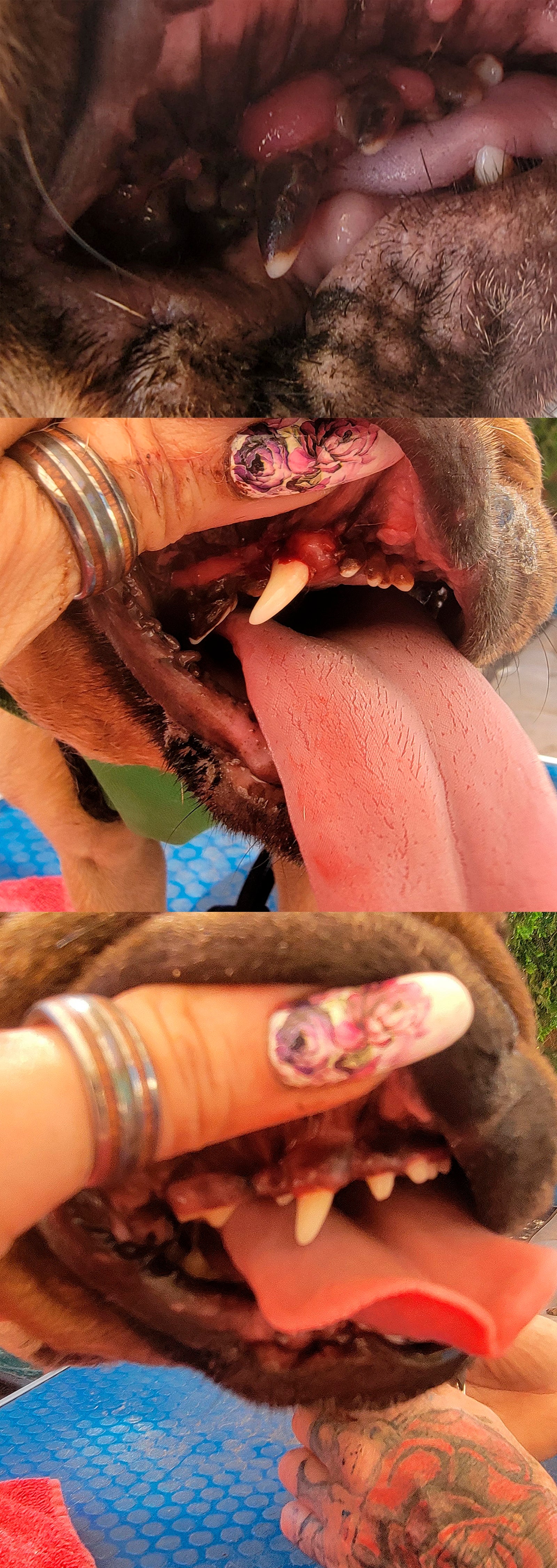Just because teeth look rotten and gums are swollen and recessed, doesn't mean their teeth can't be saved. You can regenerate gums and remineralize teeth. You just can't use all the regular toothpastes on the market. Glycol and any sweetener coat teeth and prevent them from remineralizing. BullyBaum tooth scrub and food topper can work wonders!